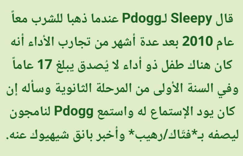 عندما كنت طالباً اعتدت في كثير من الأحيان أن أكون رئيس الفصل وكنت أدرس بجهد كبير ومن هذا المنطلق أعتقد أنني كنت بارزاً في المدرسة. كان لدي الكثير من الأحلام المستقبلية في ذلك الوقت.. شرطي، عالِم، أب.. أحببت أيضاً ألعاب الإنترنت وكنت جيداً بهم لدرجة أنني كنت أقوم بلعب جميع الألعاب الجديدة التي يتم الإفراج عنها. لذلك كانت هنالك فترة من الوقت أردت بها أن أصبح لاعب محترف. من بين هذه الأحلام أحدهم كان أن أصبح أرنب (يضحك).. أتساءل لماذا؟.. أعتقد أنني أردت فقط القفز بلا إكتراث في الأرجاء مثل الأرنب، لقد كان حلماً لطيفاً امتلكته عندما كنت في حوالي الصف الأول. في الصف السادس بدأت استمع إلى الموسيقى من أشخاص مثل Epic High و Eminem وهو الذي جعلني أريد إيصال رسالتي عن طريق الموسيقى أيضاً. كنت أحب الكتب قبل ذلك ولهذا كتبت القصائد والنصوص. شاركت في مسابقات الكتابة التي كانت تستضيفها مدرستي، وكان هناك وقت أردت فيه أن أكون مؤلف أو شاعر. منذ أن قابلت الموسيقى إلتقت خبرتي القديمة في الكتابة مع كتابتي لكلمات الأغاني الآن. أعتقد أنني أردت أن أصبح شخصاً يعبر عن شيء ما. كنت أقوم بطباعة كلمات أغاني إنجليزية وأحاكي الموسيقى، في غالب الأحيان كنت أجعل أصدقائي يستمعون لها في صفي والذي كان يجعلهم أحياناً يسئمون من ذلك، حتى أنه قيل لي 'من فضلك توقف عن القيام بهذا' (يضحك). بعد القيام بذلك لمدة عام تقريباً