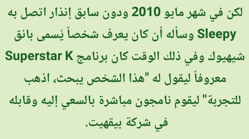 بدأت أرغب بأن لا أقوم فقط بالمحاكاة والغناء، لكن أيضاً أن أقوم بصنع وكتابة الموسيقى الخاصة بي. بعد ذلك انضممت إلى موقع مجتمعي على الإنترنت. كتابة كلمات الأغاني مع الأشخاص الذين تعرفت عليهم هناك كانت أول خطوة لي في أنشطتي في الموسيقى. في ذلك الوقت أتذكر خروجي من المدرسة عندما كنت أرغب بتناول الجاجانقميون بشدة وشراء الطعام من السوبرماركت يومياً. لكن منذ أنني كنت مازلت طالباً ولم أمتلك الكثير من المال، كنت أفكر بعمق حول الأشياء التي اشتريتها. بالتفكير بالأمر الآن إنه مضحك بعض الشيء. أعتقد أن الكثير من الناس يعرفون هذا بالفعل، لكن سبب إنضمامي لبيقهيت هو بسبب أنني أخفقت في الإختبارات الإضافية في بضع وكالات للأندرجراوند قد قمت بإختبار الأداء بهم. في السنة الثالثة من المدرسة المتوسطة كنت جاهزاً بجدية للتركيز على الدراسة في المدرسة الثانوية عندما تلقيت إتصالاً. أحد الأشخاص الذين كانو يقومون بتقييم تجارب الأداء خاصتي كان لديه علاقات مع منتج حالي في بيقهيت. تم التواصل معي وإخباري بإحضار أغنية إلى الوكالة لكن منذ أنني كنت خائفاً من الذهاب وحدي طلبت من صديق أن يذهب معي. مازلت أتحدث عن هذا الحدث مع ذلك الصديق لأنني مازلت أتذكر بوضوح التوتر الذي شعرت به حينها، لايبدو وكأنه حدث منذ وقت طويل هكذا